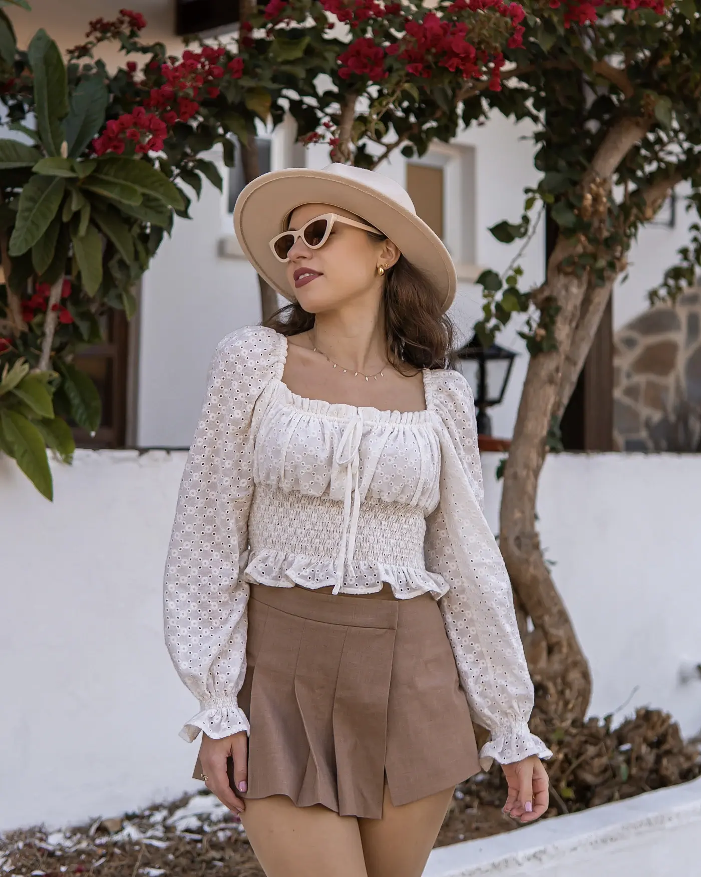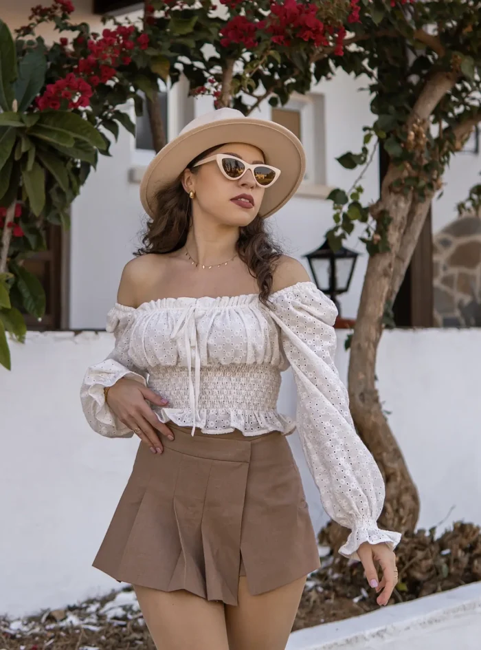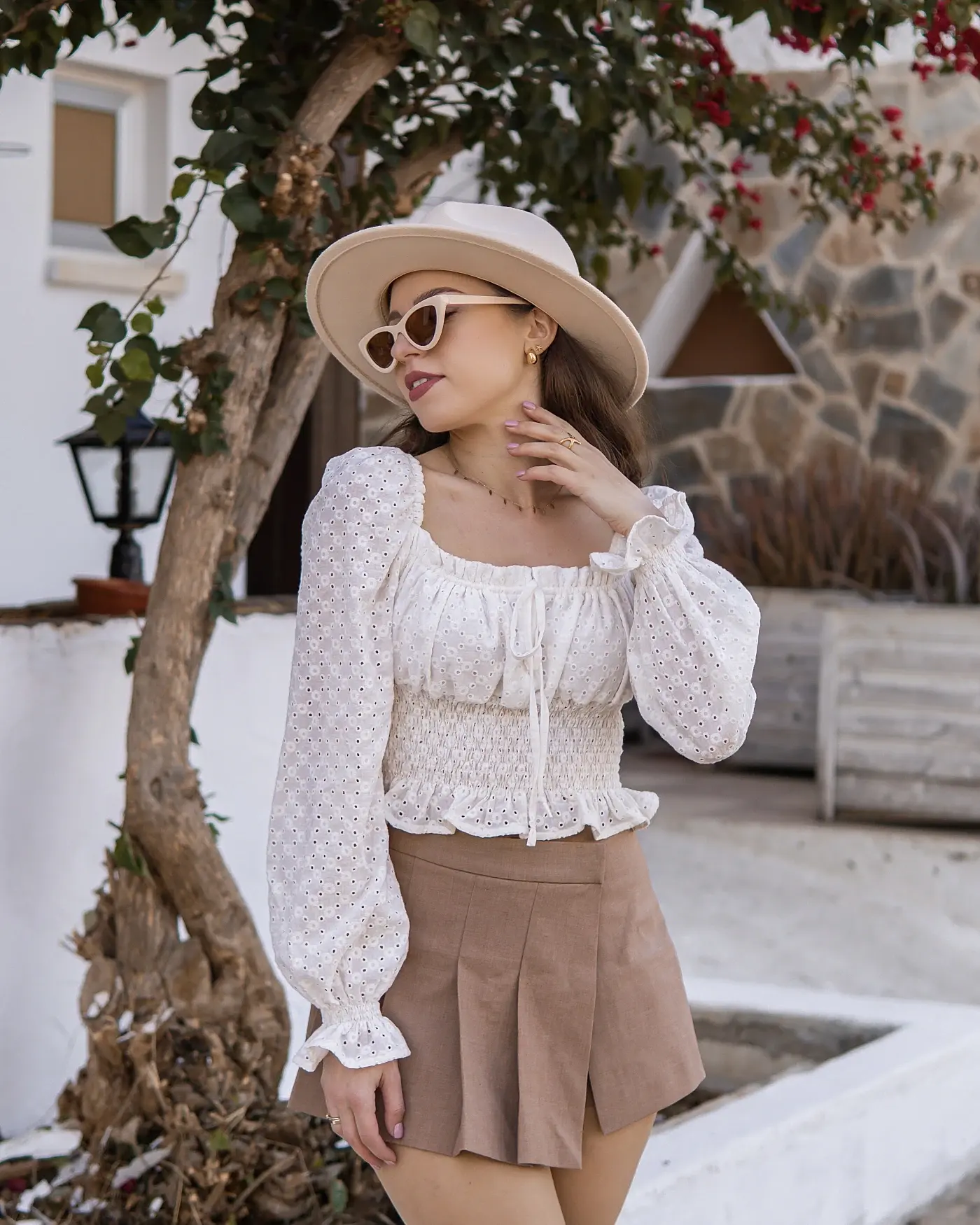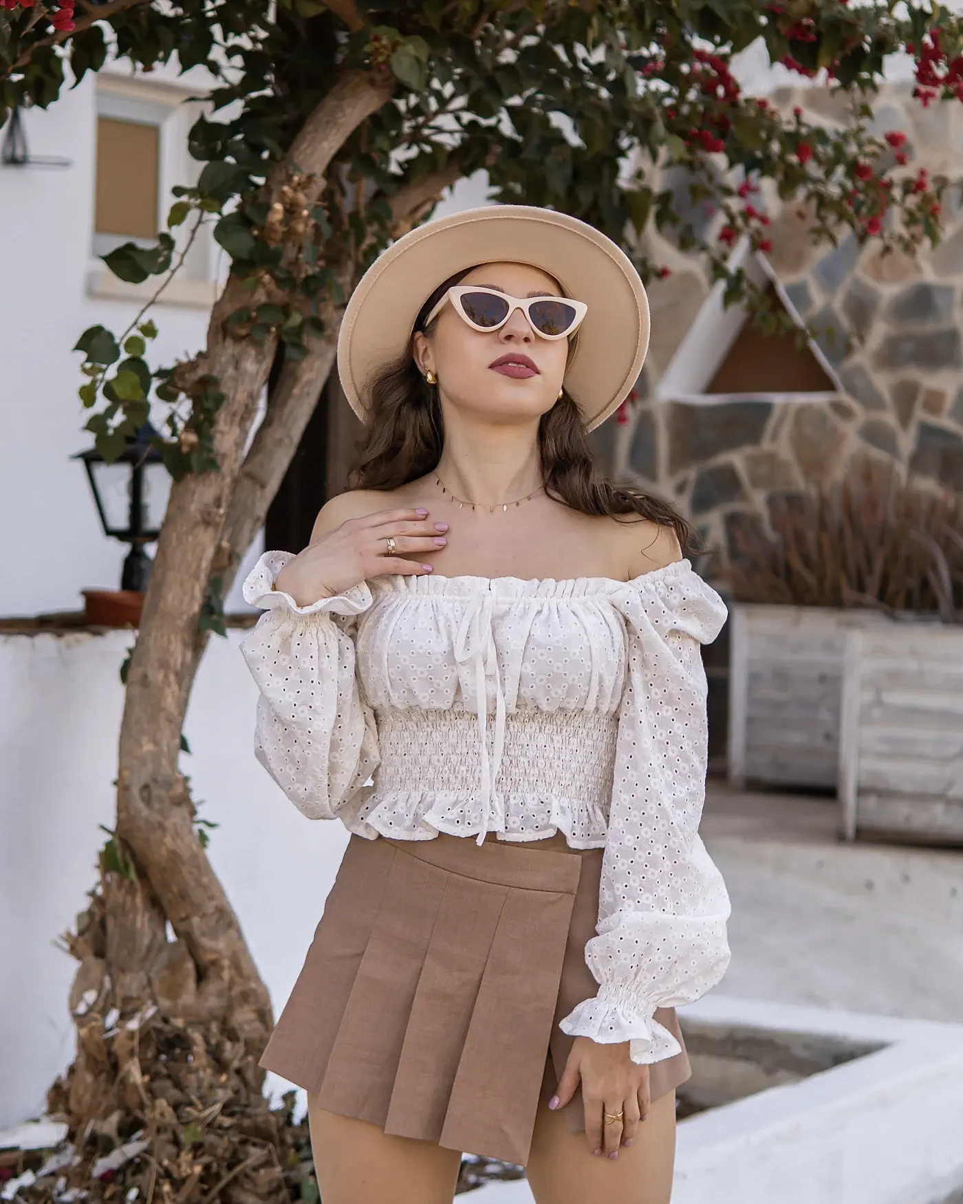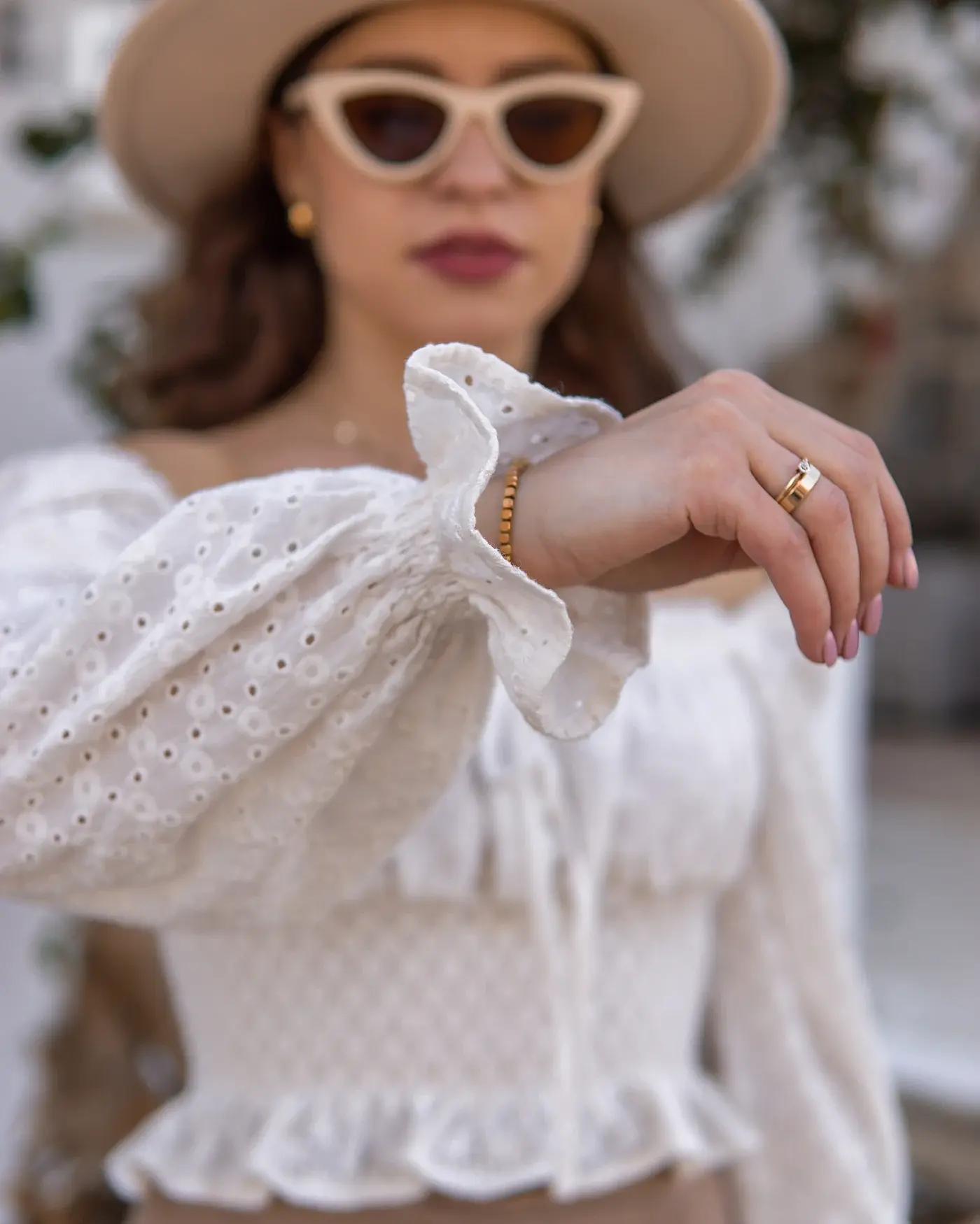 Bluzka AMANDA to model, który sprawdzi się w każdej stylizacji. Uszyłam ją z haftowanej bawełny. Model z wiązanym dekoltem na kilka sposobów, pas z gumonici pięknie podkreśla talię i biust, całość dopełniają długie bufiaste rękawy. 100% handmade, zaprojektowana i uszyta w domowym zaciszu.