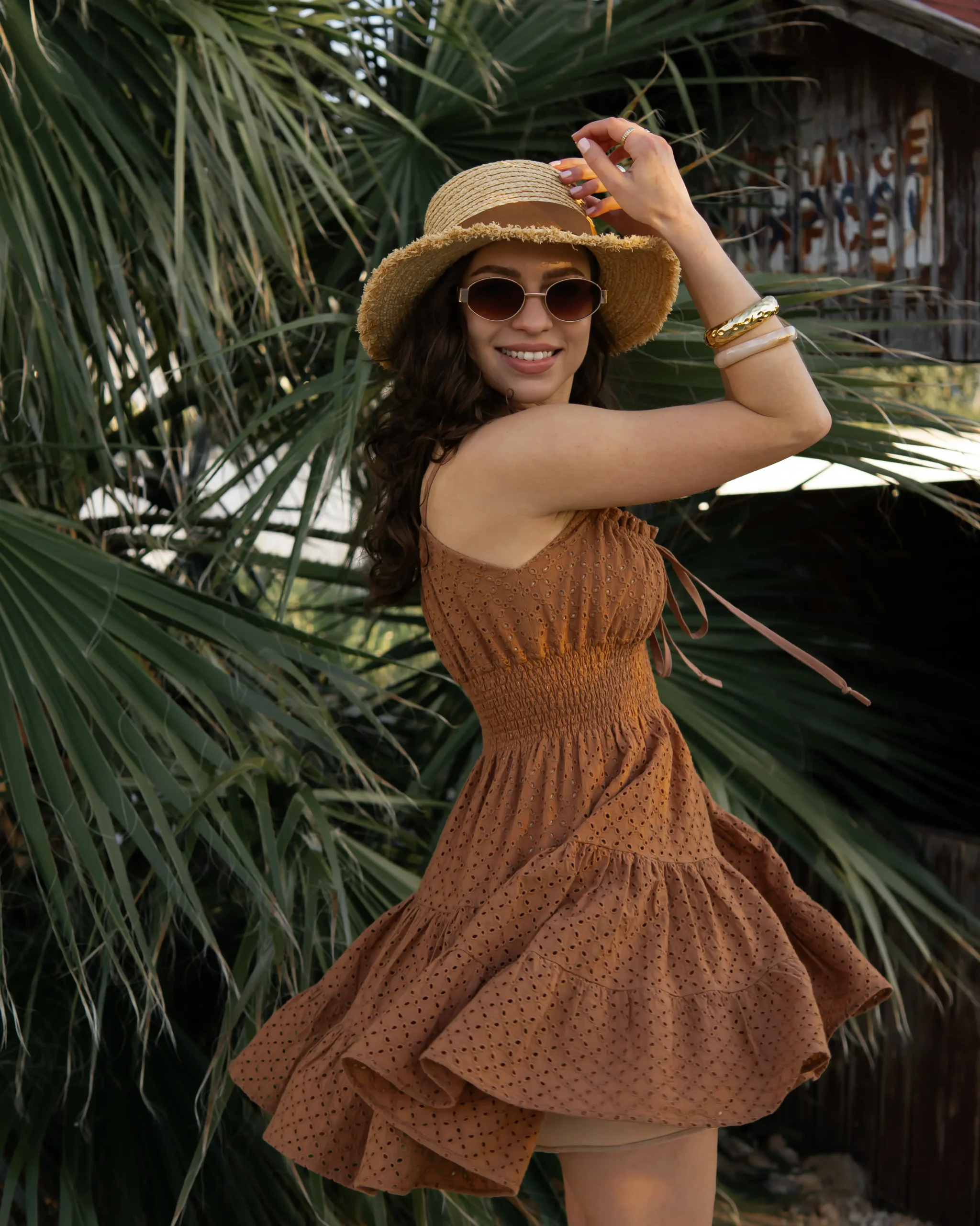Sukienka AMBER to idealna opcja na cieplejsze dni. Uszyłam ją z przyjemnej dla ciała tkaniny bawełnianej z haftem. Model na ramiączkach z wiązanym dekoltem na kilka sposobów (mocniej wycięty niż standardowo), pas z gumonici pięknie podkreśla talię i biust, całość dopełnia mocno rozkloszowany dół uszyty z falbanek. Sukienka ma wszytą podszewkę. 100% handmade, zaprojektowana i uszyta w domowym zaciszu.