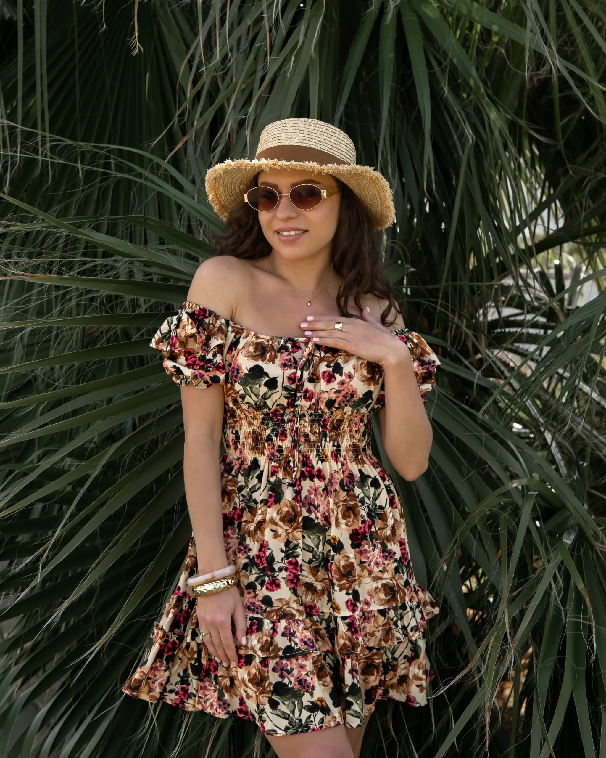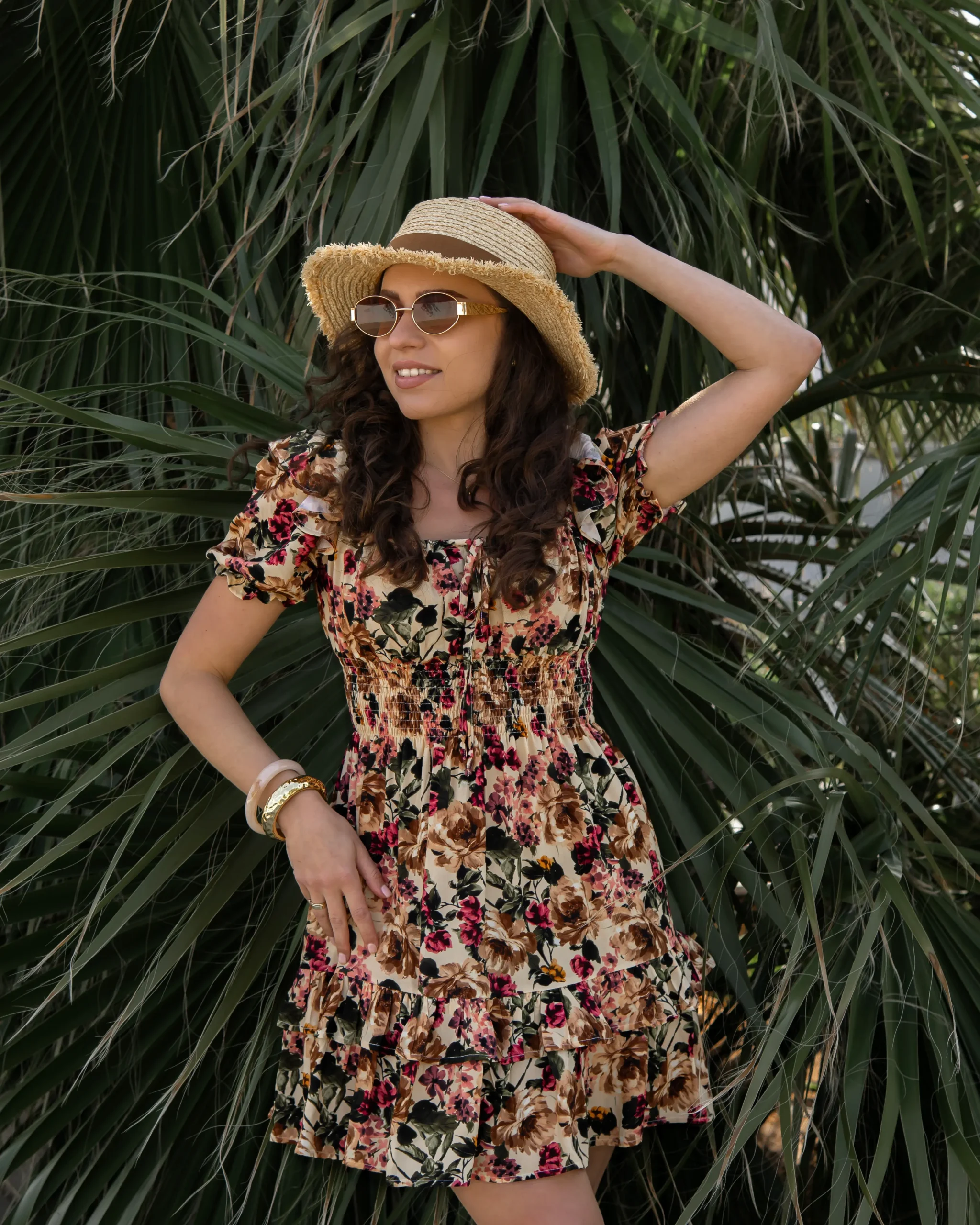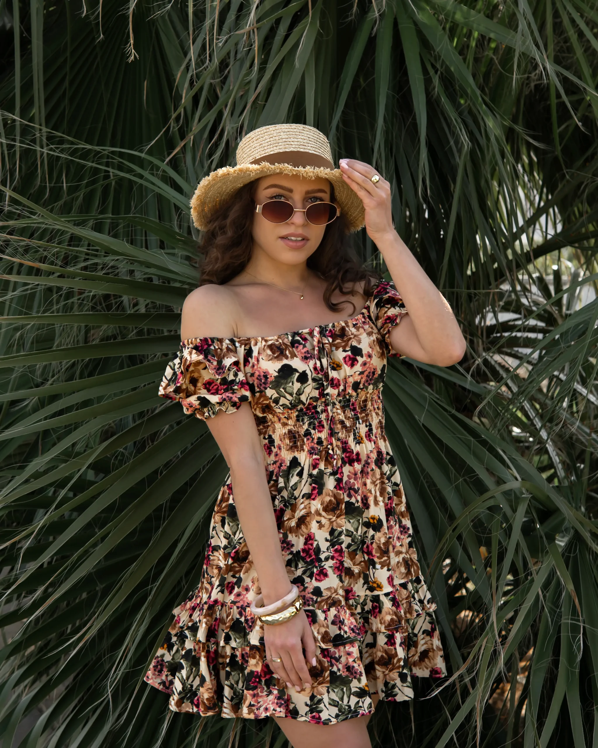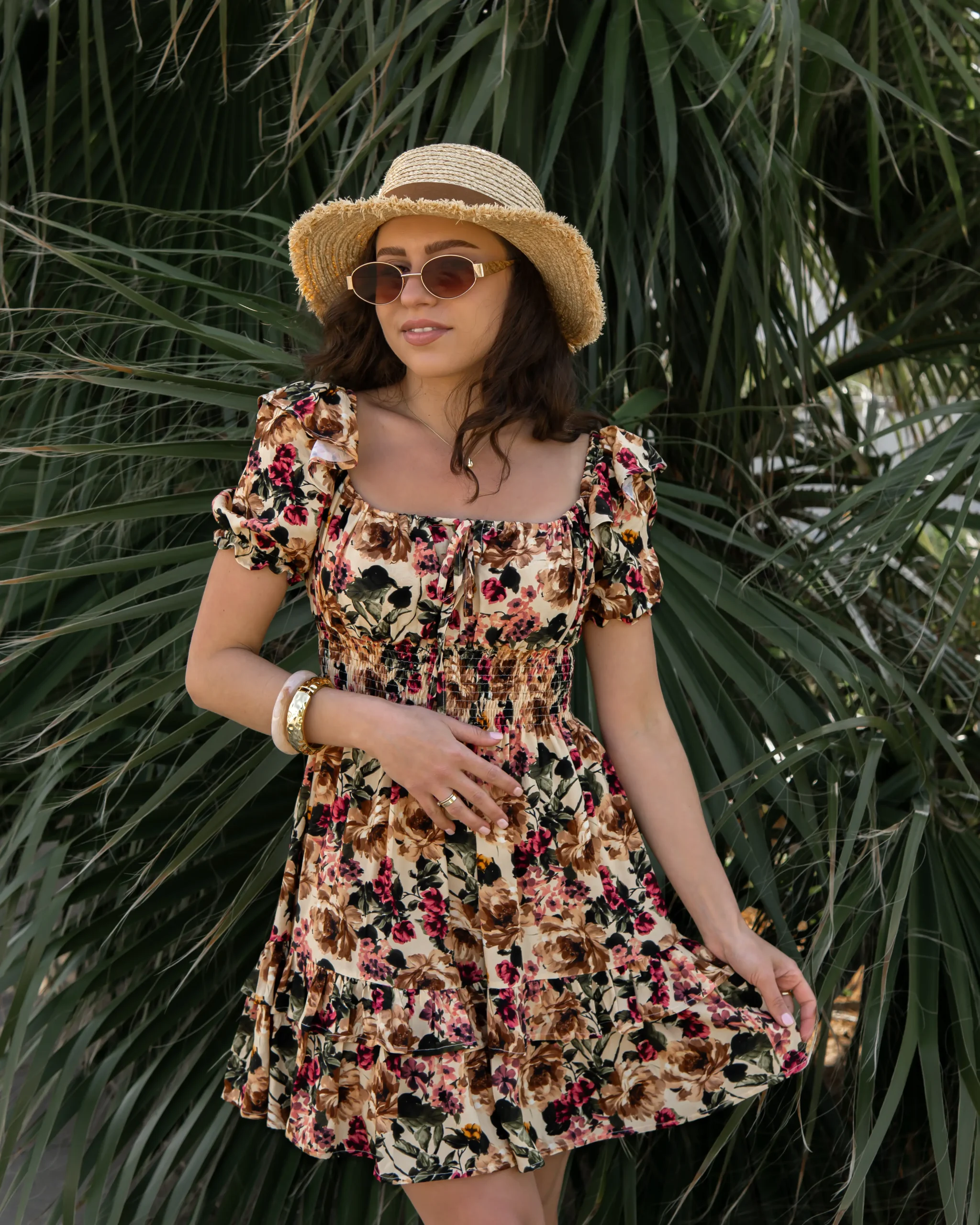 Romantyczna CAMILLE poleca się do wiosennych stylizacji. Uszyłam ją z przyjemnej dla ciała wiskozy w kwiatowy print. Model z wiązanym dekoltem, pas z gumonici pięknie podkreśla talię i biust, dół wykończony falbankami, całość dopełniają falbanki na rękawkach. 100% handmade, zaprojektowana i uszyta w domowym zaciszu.