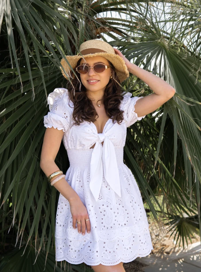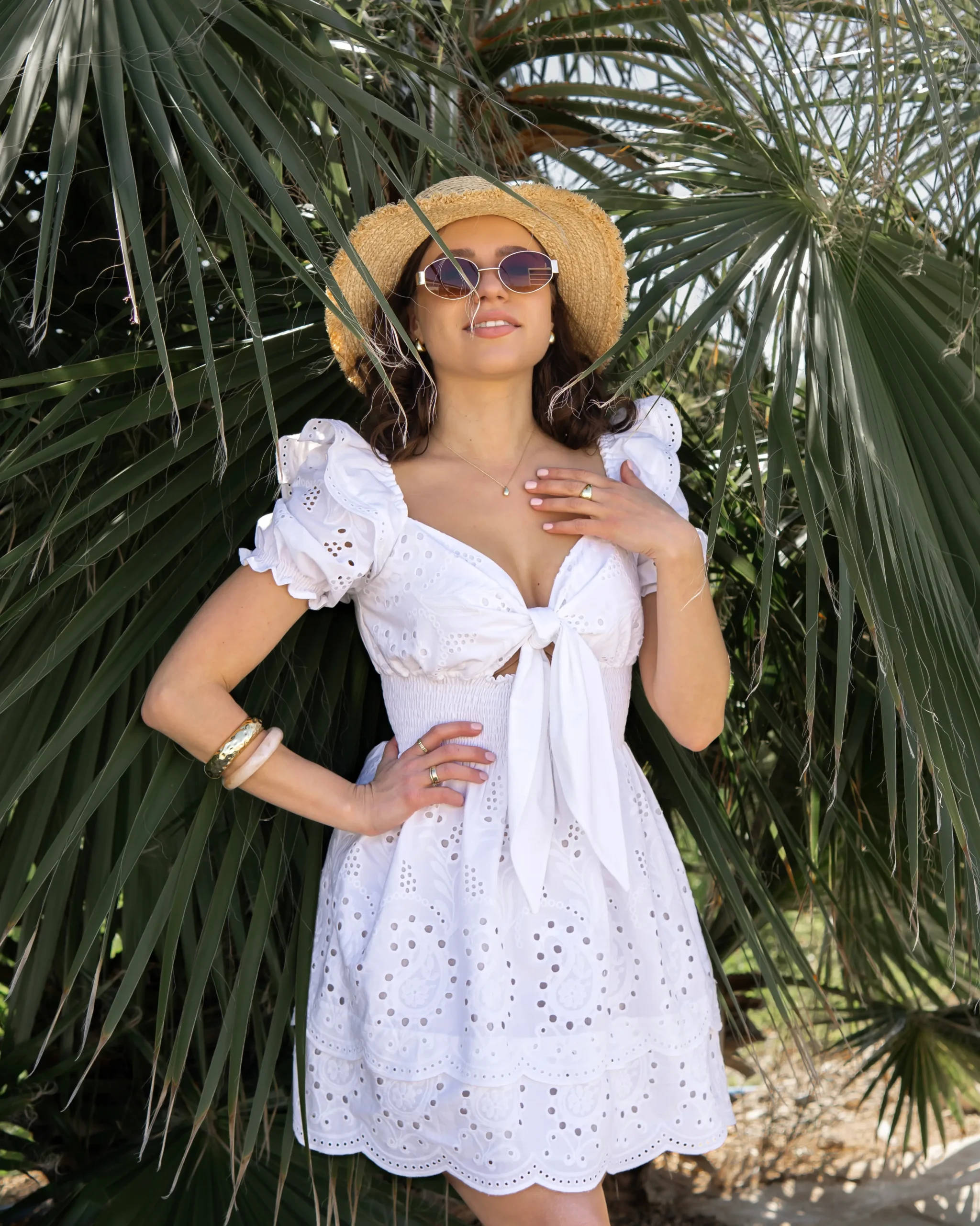 Dziewczęca CHARLIE to idealna propozycja na cieplejsze dni. Uszyłam ją z przyjemniej dla ciała tkaniny bawełnianej z efektownym haftem. To model z wiązanym dekoltem, który daje efekt wow. Pięknie podkreśla talię i biust. Sukienka ma pas z gumonici w talii, który dopasowuje się do sylwetki, wiązany dekolt, całość dopełnia uroczy rękawek z falbanką. 100% handmade, zaprojektowana i uszyta w domowym zaciszu.