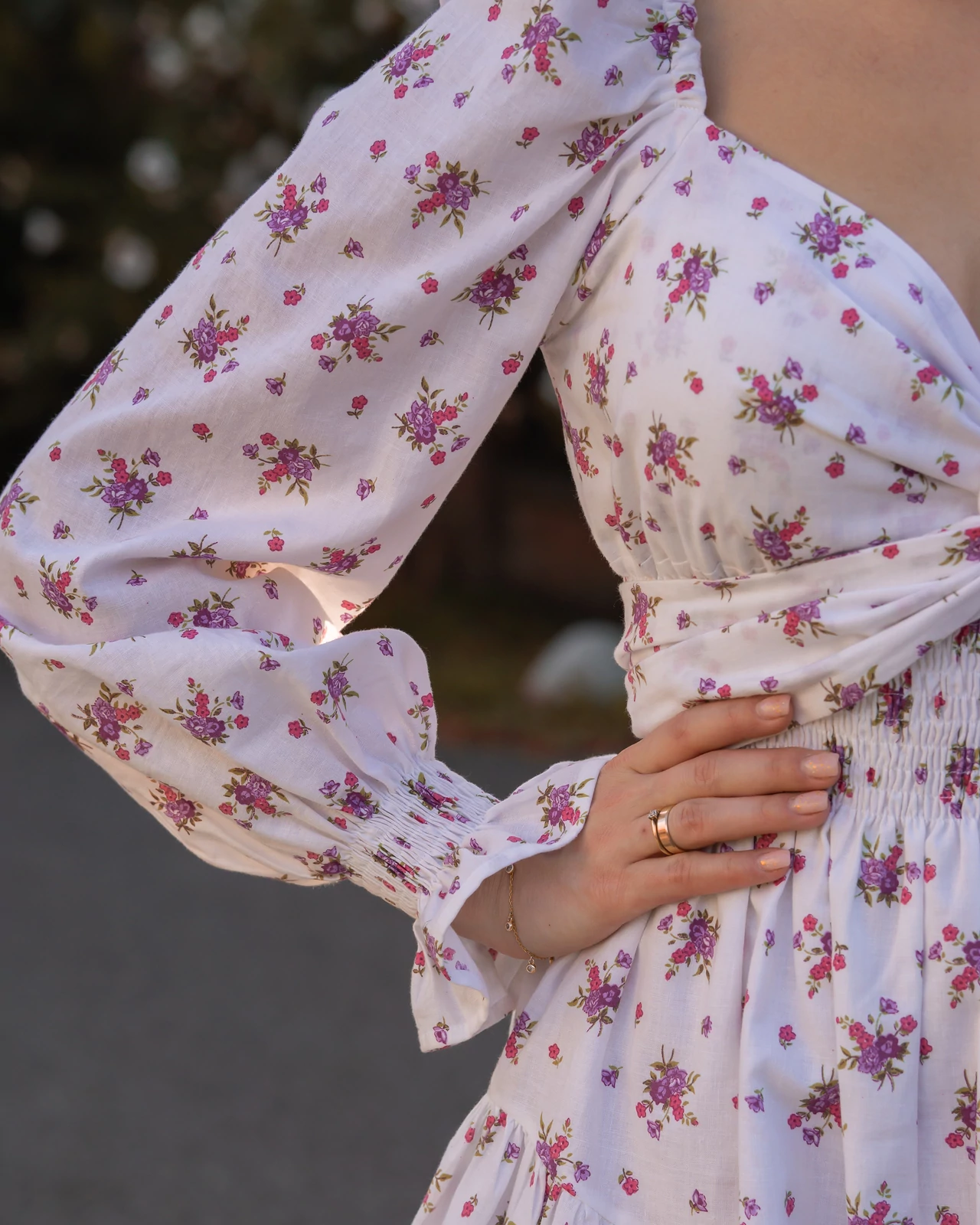 Romantyczna EMILLY to model z wiązanym dekoltem, który daje efekt wow. Pięknie podkreśla talię i biust. Sukienka ma asymetryczny dół z falbanką, pas z gumonici w talii, który dopasowuje się do sylwetki, wiązany dekolt na dwa sposoby: kopertowy i węzełek. 100% handmade, zaprojektowana i uszyta w domowym zaciszu.