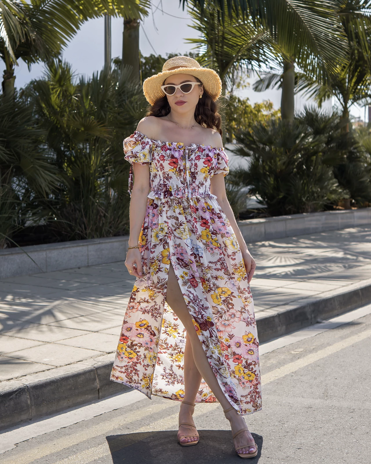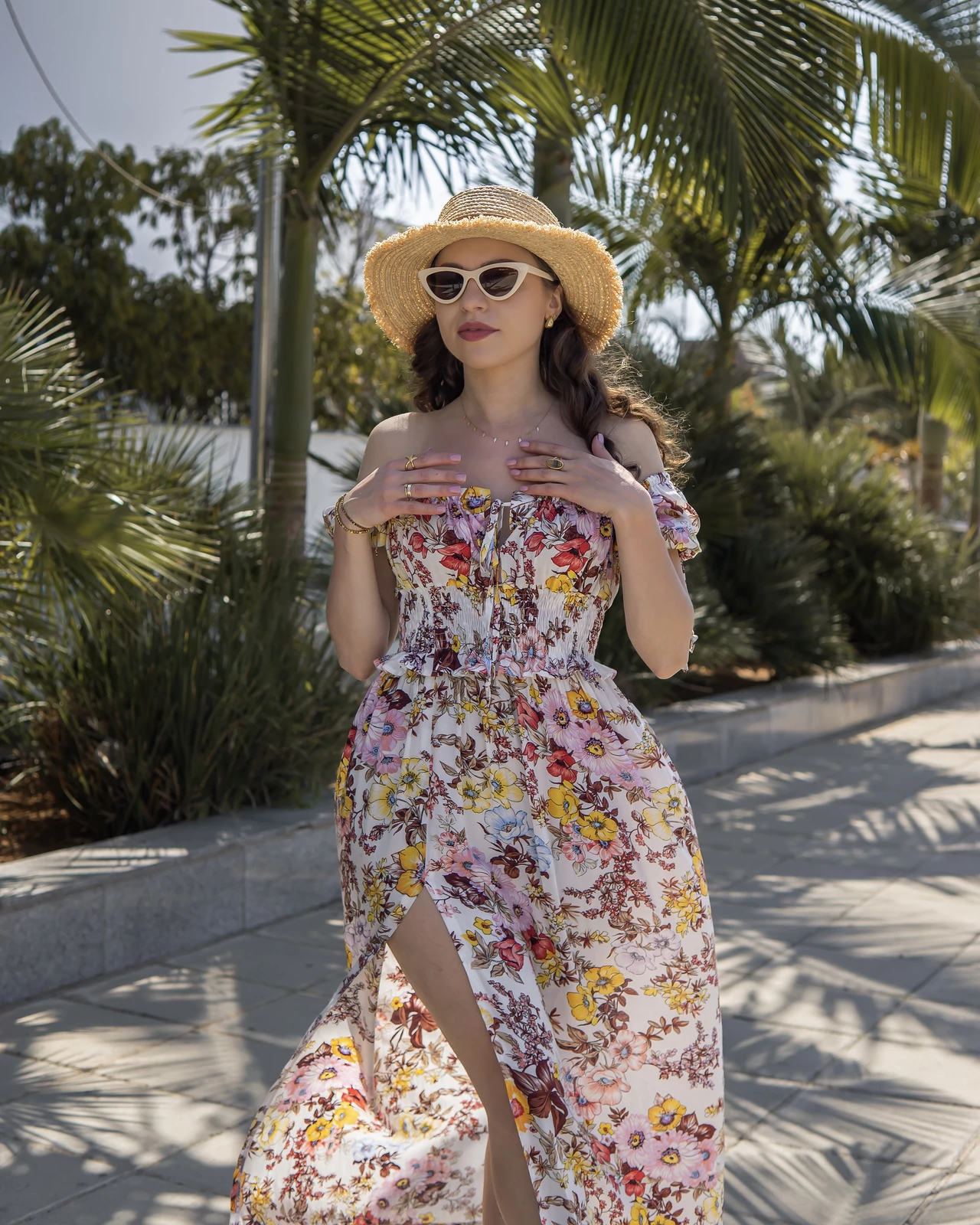 Sukienka ROSALINE to idealna propozycja do letnich stylizacji. Uszyłam ją z przyjemnej dla ciała delikatnej wiskozy w piękny kwiatowy print. Model z wiązanym dekoltem, pas z gumonici pięknie podkreśla talię i biust, na nodze efektowne rozcięcie, całość dopełnia falbanka. 100% handmade, zaprojektowana i uszyta w domowym zaciszu.