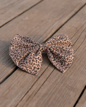 • beżowa spinka kokarda do włosów w cętkibeżowa spinka kokarda do włosów w cętki